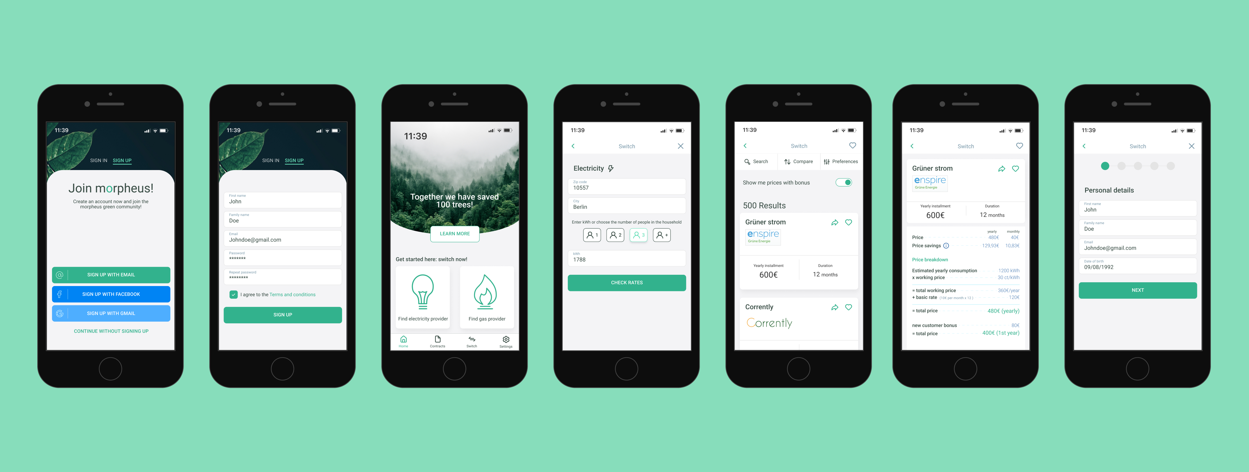 Morpheus is a platform that provides users with options for renewable energy providers and guides them through the process of switching to renewable energy.