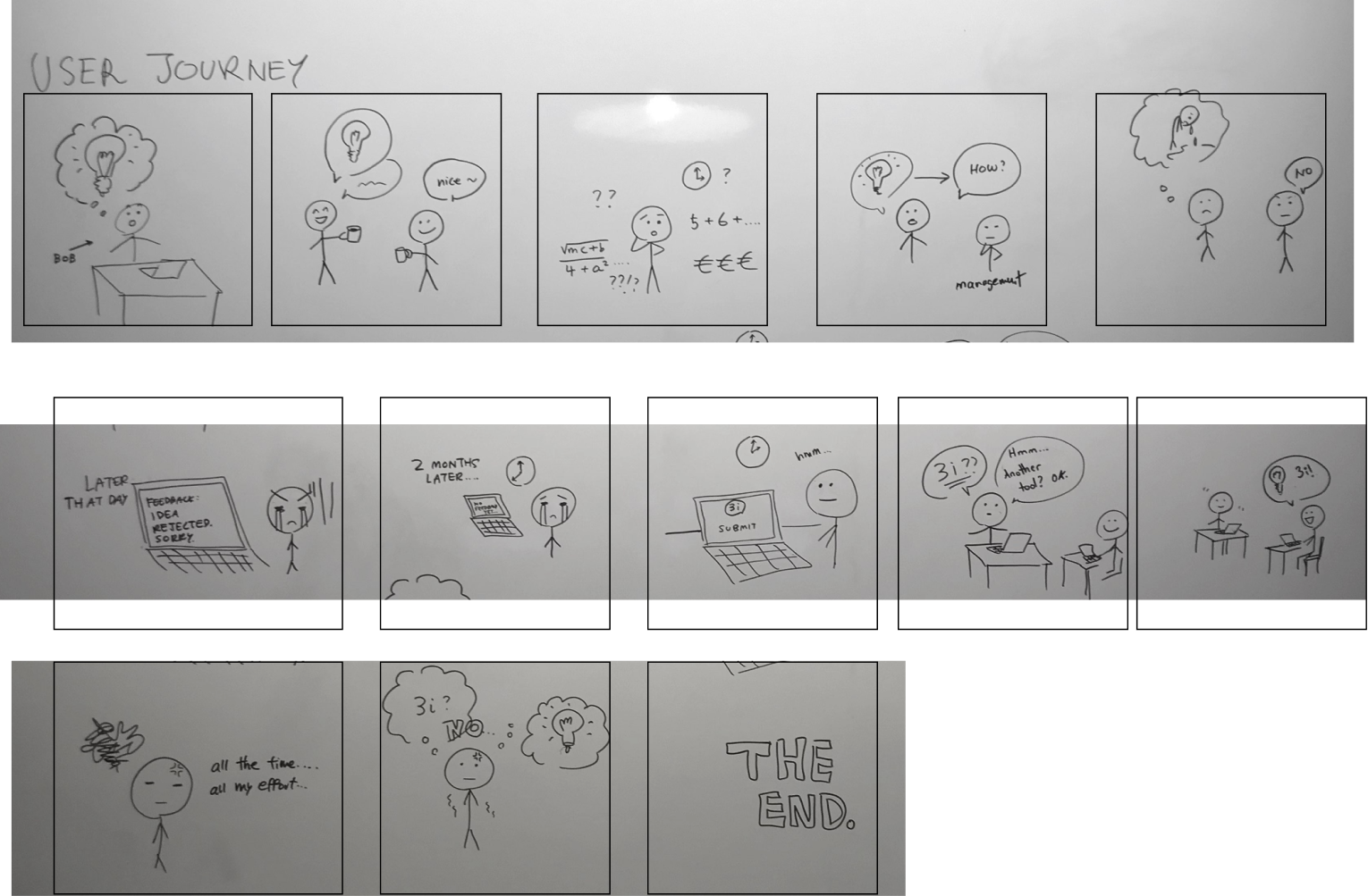 We also put together a user journey so we can get a sense of the employee’s motivations, his needs and pain points.
