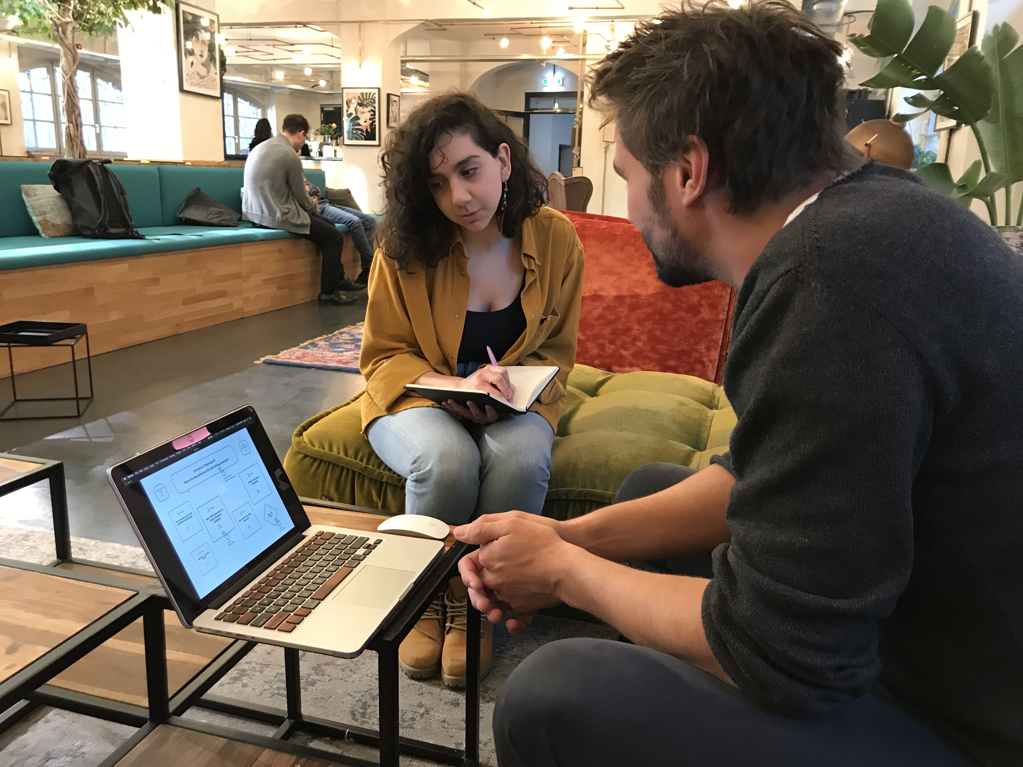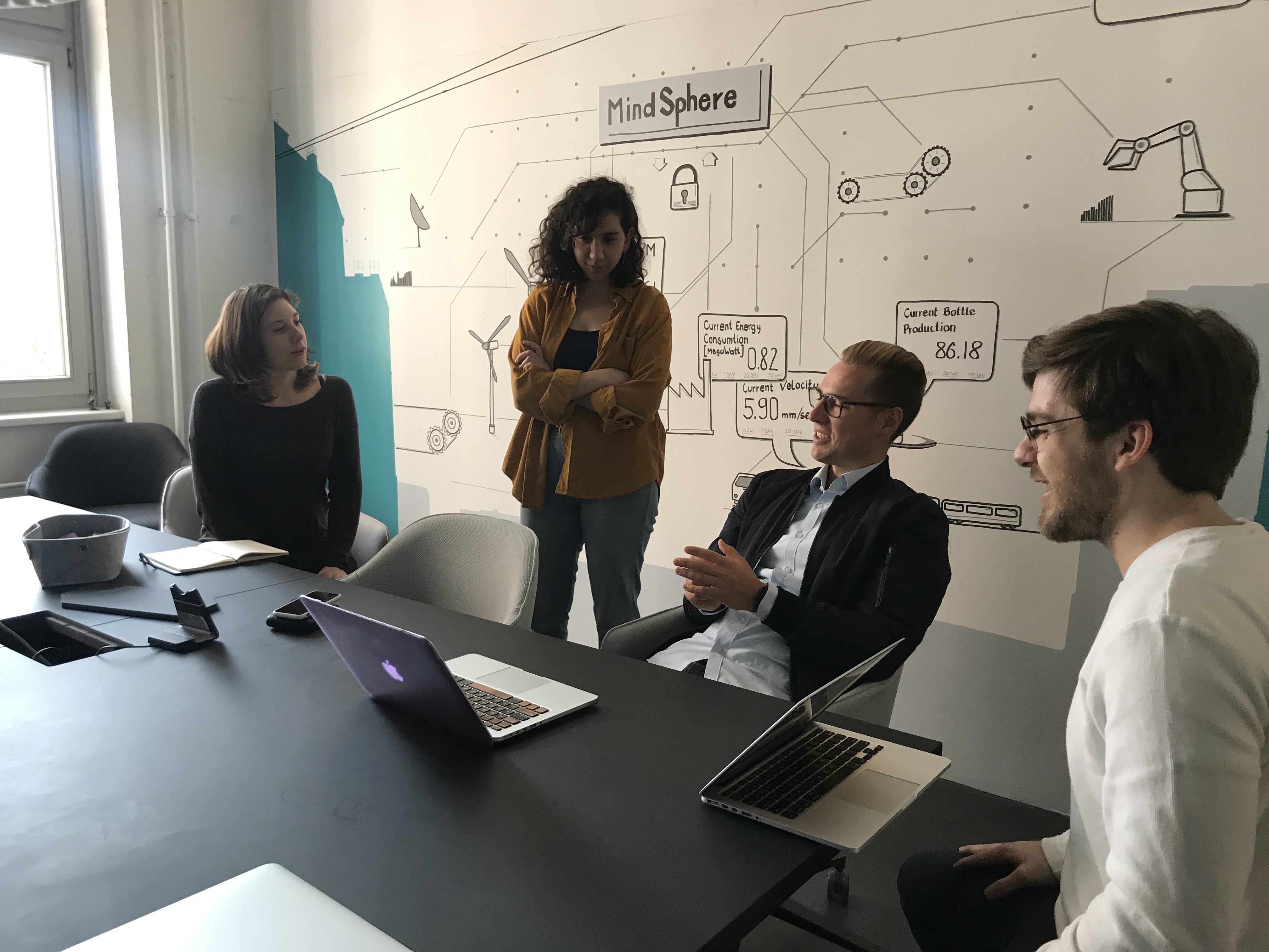 We made our mid-fidelity prototype interactive, and we had the chance to go to The Factory, a co-working space, and test our prototype with two employees from the Siemens office and three other people at The Factory.